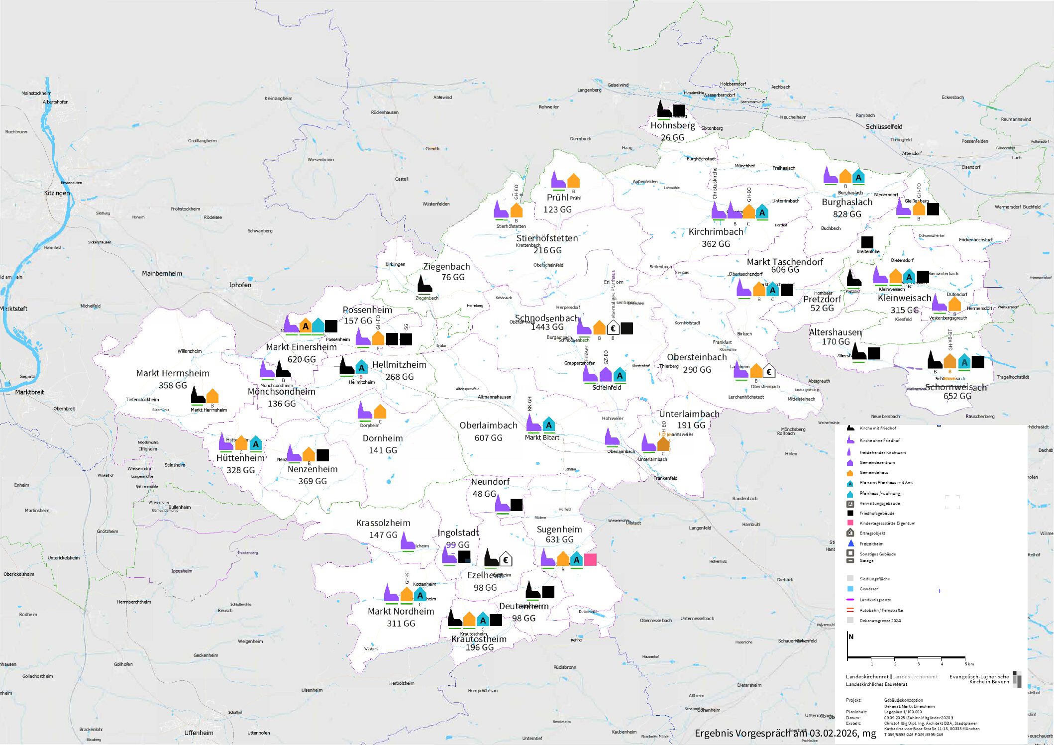 Ich mache das einmal am Dekanatsbezirk Markt Einersheim konkret, sollte dieser unter Umständen zu einer Regionalgemeinde werden. Wir sind ca. 10.000 Gemeindeglieder und derzeit 13 Stellen, die dann, so Vorausschau auf die kommende Landesstellenplanung, auf 11 bis 10 zurückgehen werden. Selbstverständlich arbeiten wir bereits jetzt multiprofessionell, da Diakon.innen, Pfarrer.innen und Kirchenmusiker.innen zusammen mit dabei sind.